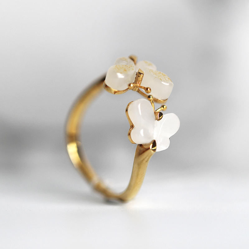 金镶玉雕蝴蝶一双,化用“庄周梦蝶”与“陌上花开”之境