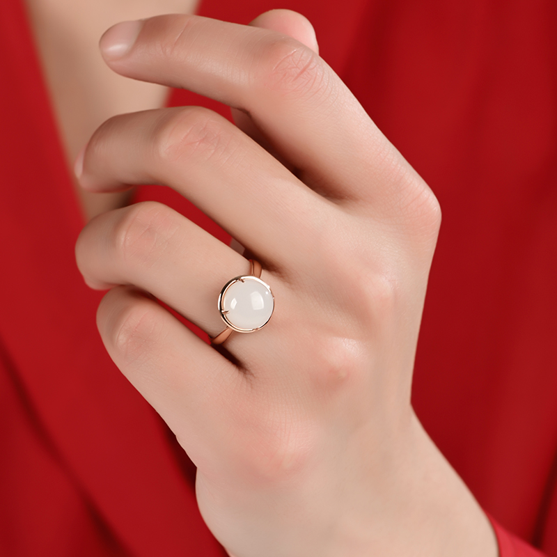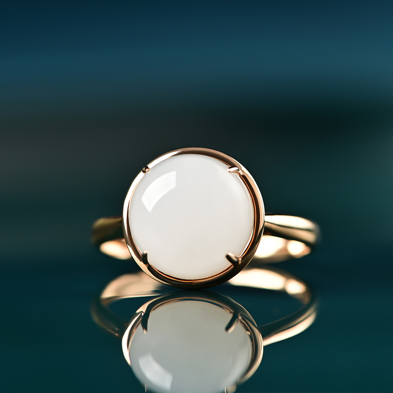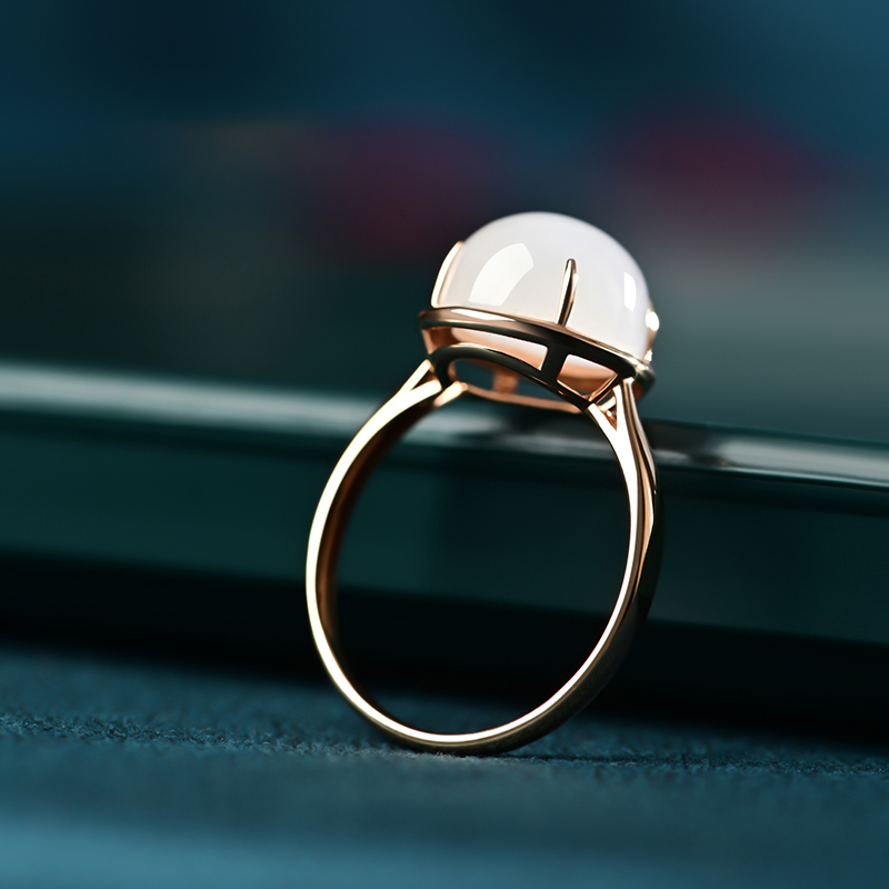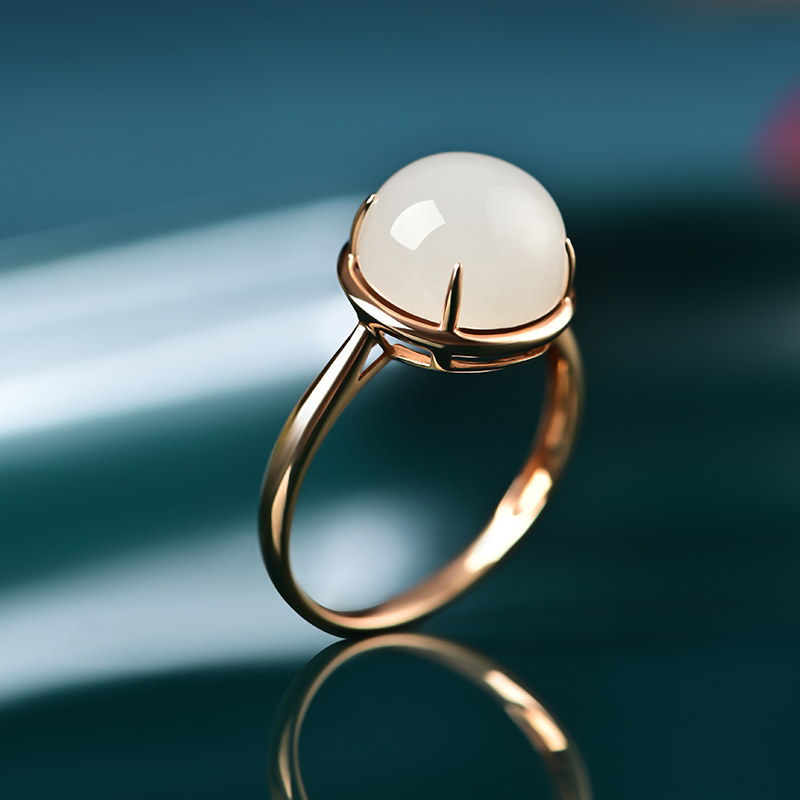 蛋面白玉金镶戒指